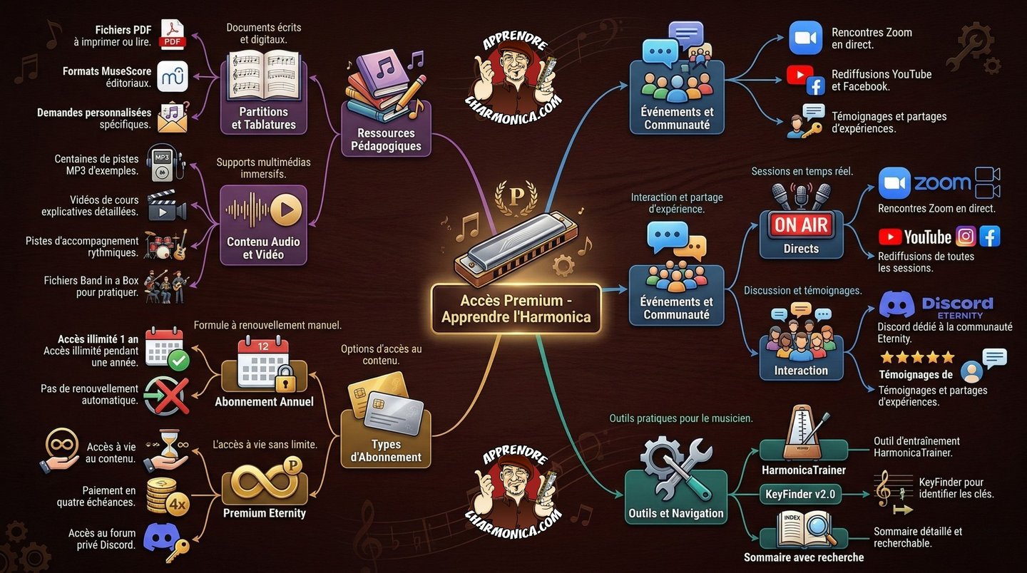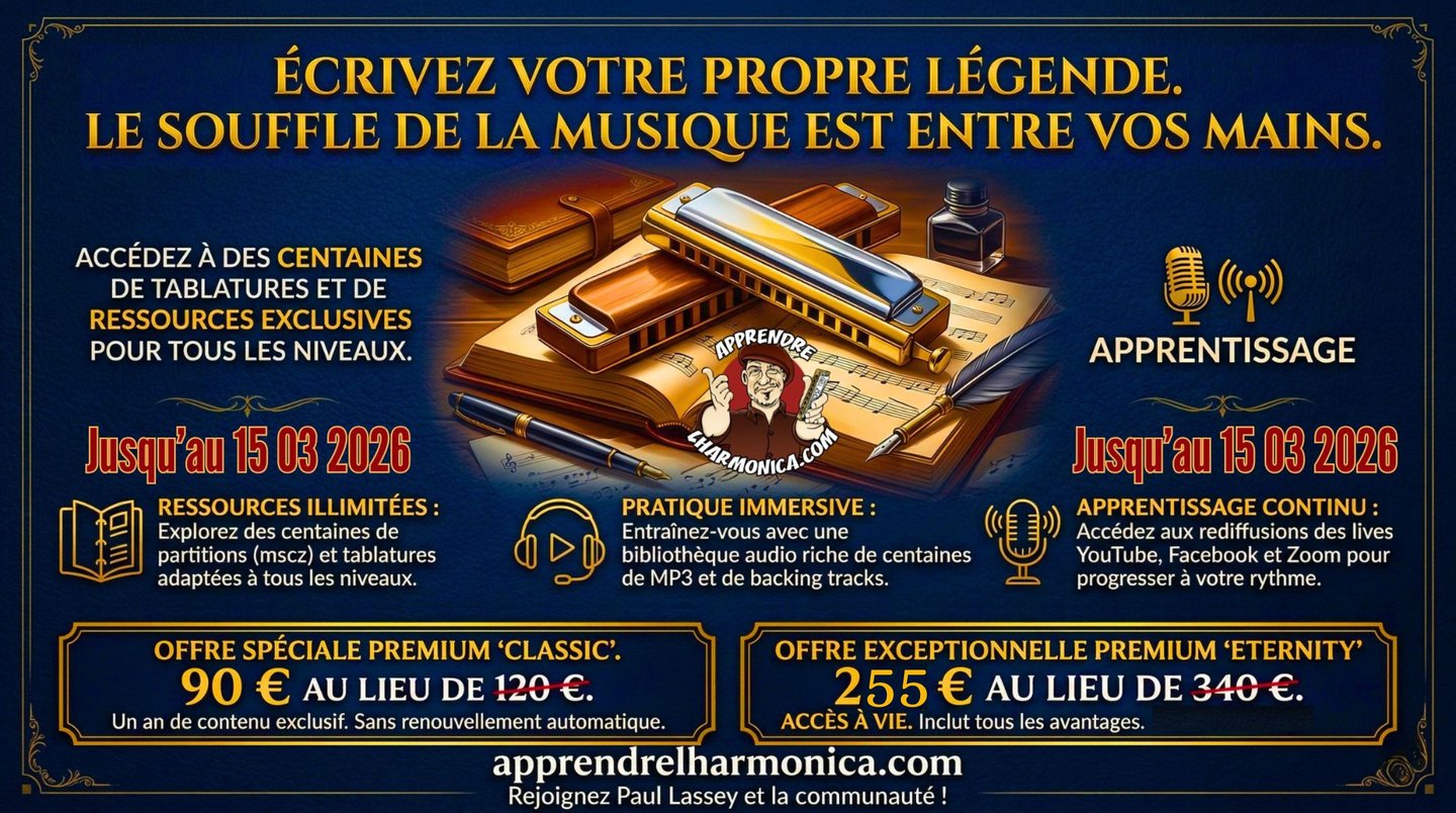 Pour les membres Premium : L'application est d'ores et déjà incluse dans votre espace membre ! Connectez-vous et commencez à pratiquer dès maintenant : Accéder à Harmonica Path sur l'Espace Premium