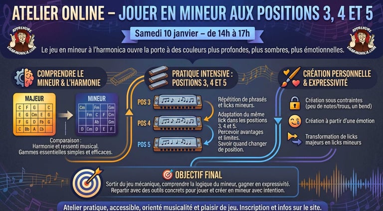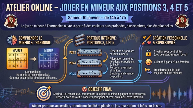 Le 10 janvier, je vous propose un atelier pour ouvrir votre jeu aux tonalités mineures. L'objectif n'est pas de vous noyer sous la théorie, mais de connecter directement votre inspiration à votre souffle.
