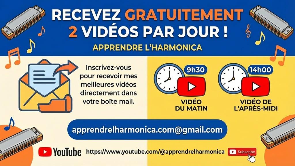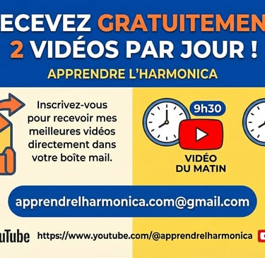 Pour recevoir, chaque jour, gratuitement, 2 videos de ma chaine Youtube.... il suffit de m'envoyer un email à l'adresse indiquée 😉