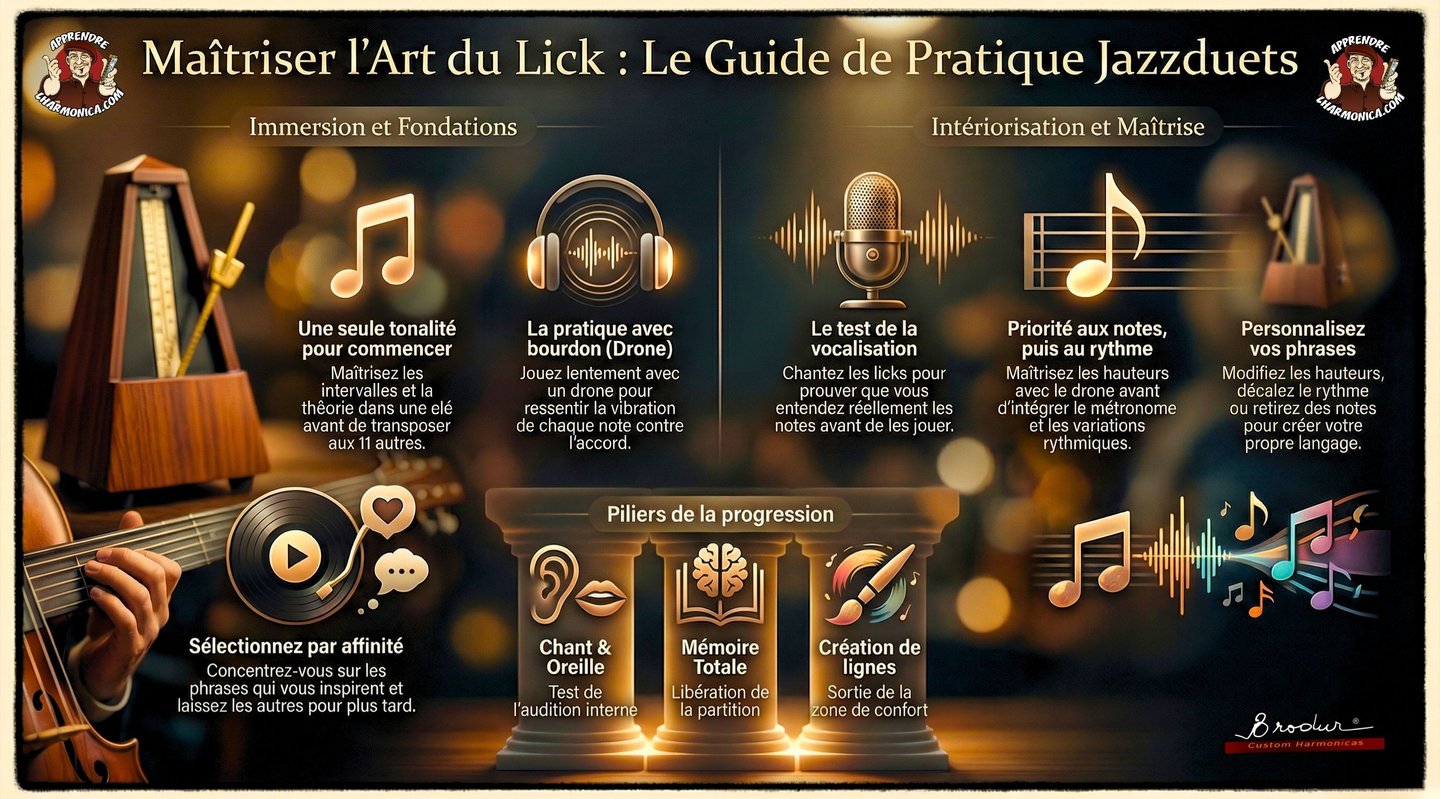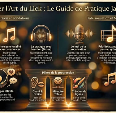 Un guide pratique si votre approche consiste à travailler des licks. Même si cette infographie est orientée ''jazz'', ce guide peut s'appliquer quelque soit le style abordé.